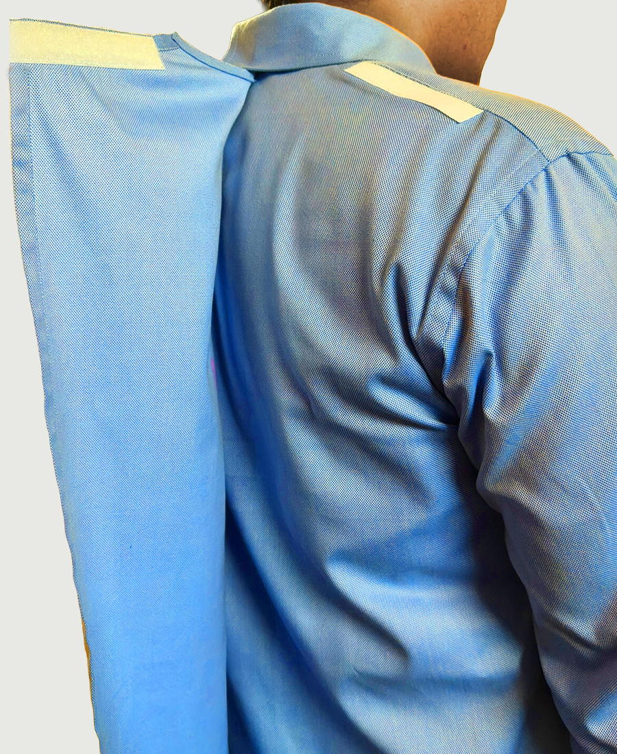 This adaptive open-back shirt has inconspicuous Velcro closures instead of buttons, allowing caregivers to dress the person swiftly and gently without lifting arms or fumbling with tiny fasteners. It still looks like a regular shirt, not medical gear, making it appropriate for home, outings, or care settings.
